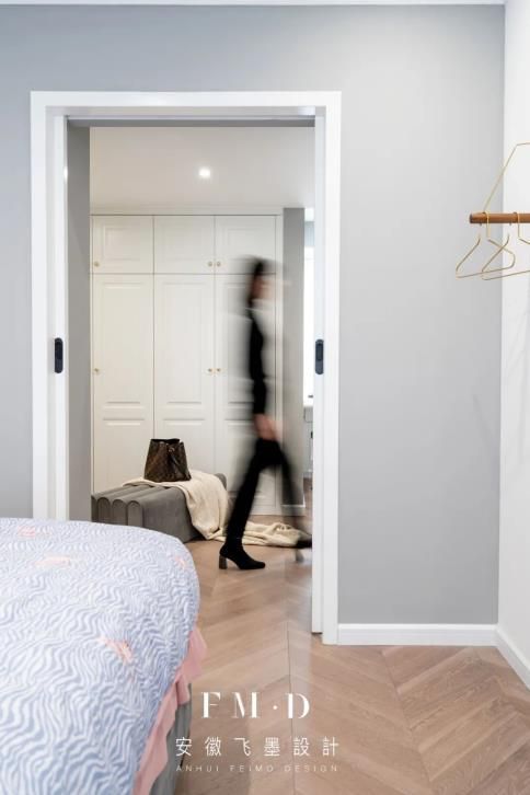 如果你的臥室是用玻璃隔斷隔開的,那么臥室的門就直接跟隨著隔斷:
