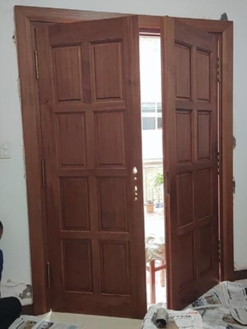 實木大門是能夠用木蠟油進行涂裝的,這里就有用戶采辦回去自身施工的屋室實木大門涂裝案例。