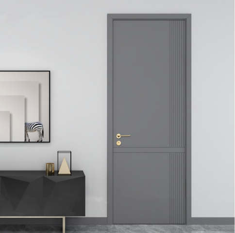 面層采用PVC木紋皮貼覆,木紋清楚、自然。PVC木門的特點,門扇采用復塑鋼板經由壓花與木質內筋復合而成,旁邊填充發泡膠和蜂窩隔音保暖資料,用指接杉木做龍骨架正面為鋼板封邊。