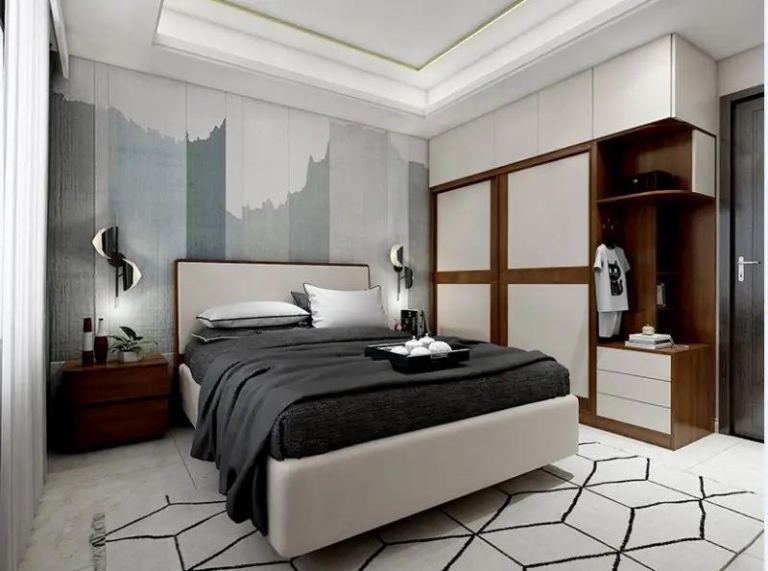 若臥室內(nèi)整體結(jié)構(gòu)較為方正,且墻面無(wú)明顯突出的梁柱等障礙,那無(wú)論選擇定制家具,還是非定制整裝家具,都能恰當(dāng)擺放至臥室的某片區(qū)域中,這樣我們主要關(guān)注下色調(diào)風(fēng)格就可以了。