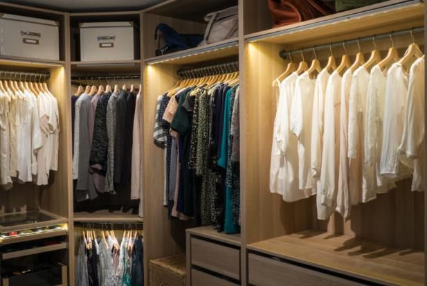 首先按類型整理衣服,然后按顏色整理衣服,這可能是為不同場合搭配服裝的更有效方式。例如,連帽衫和運(yùn)動(dòng)衫可以緊緊地掛在一起,更好的襯衫或襯衫可以在另一個(gè)部分工作。